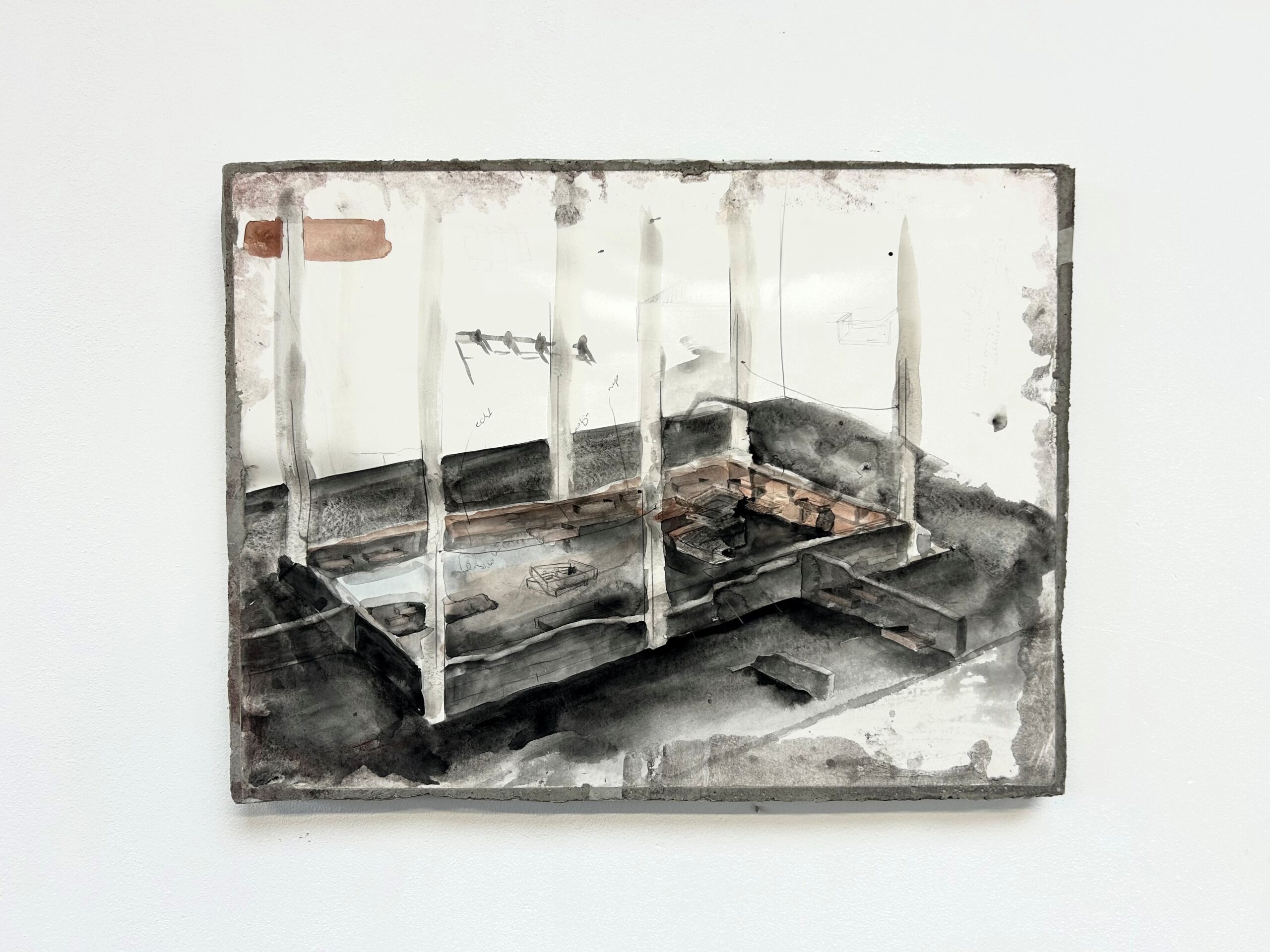 Maaike Kramer Year: 2025; Title: Time, endless shelter; Dimensions: 49,5x39x3; Medium: aquareltekening in beton
