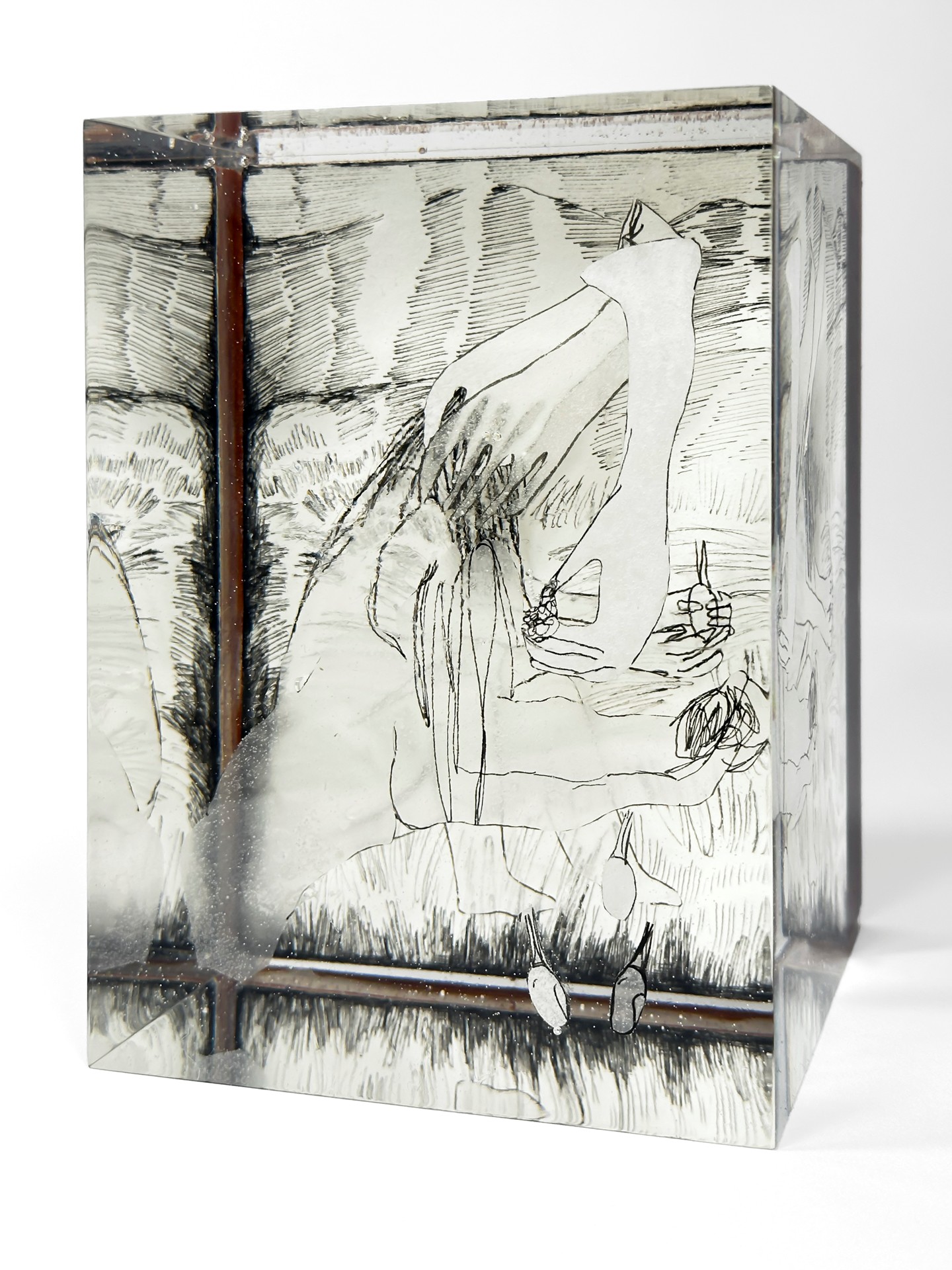 Rozemarijn Westerink Year: 2024; Title: Mountain 01-24-978; Medium: pen, inkt, papier en giethars op hardhout; Dimensions: 16x11x11
