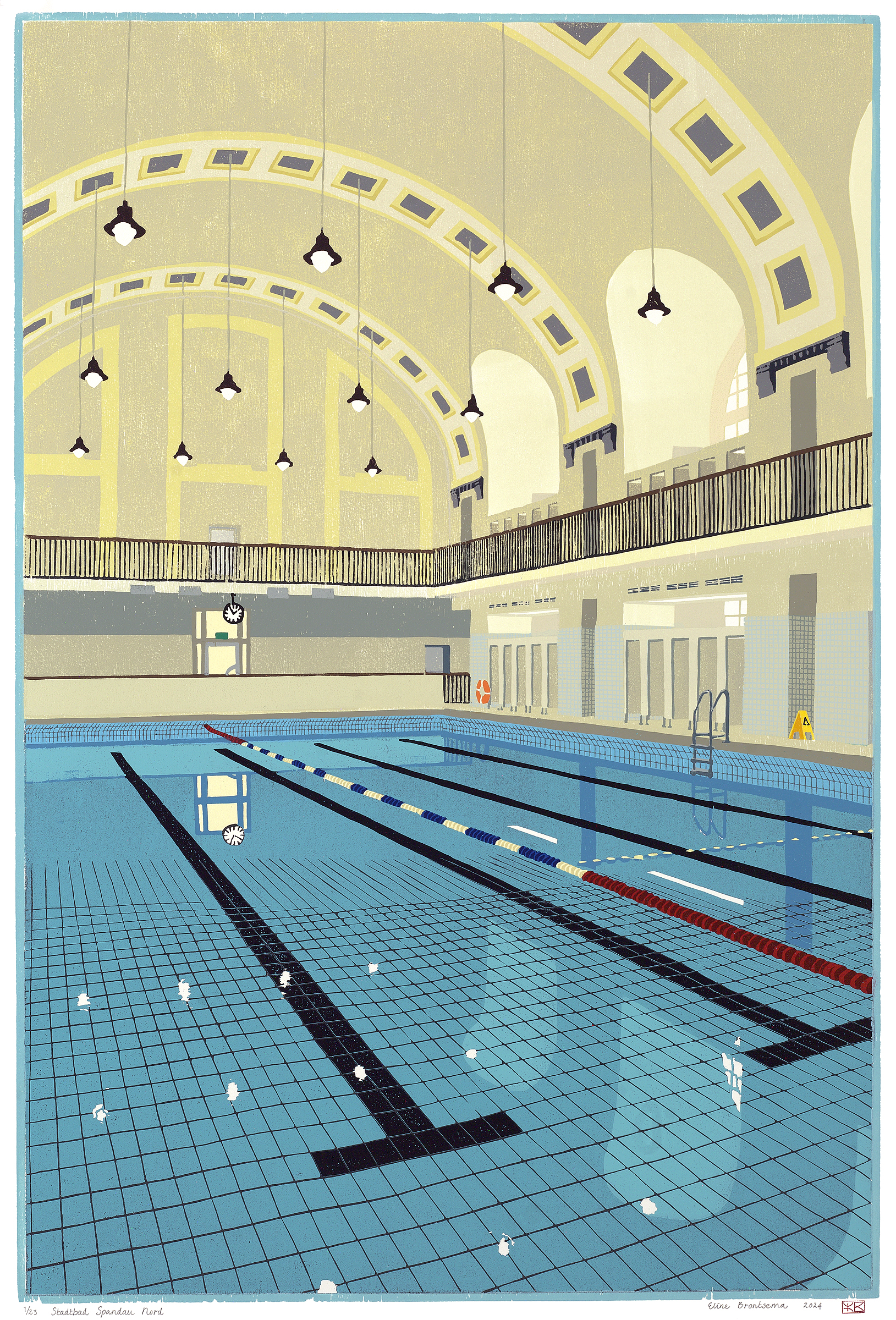Eline Brontsema, Stadtbad Spandau Nord, ed. 23, 2024, houtsnede, 71,2 x 47,9 cm