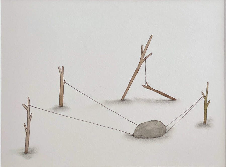 Ecosystem, Stick and stones (2004); Ink on paper; 23 x 31cm