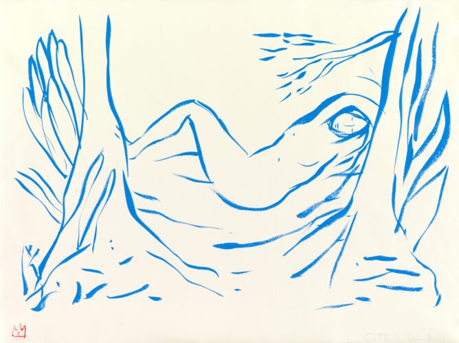 Nature's Embrace (2022); Gouache op papier in een plexiglas lijst; 48 x 63 cm